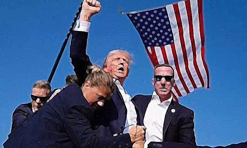 Un destino millimetrico, mentre protegge la sua scatola cranica ed il relativo contenuto, imprime alla corsa per le presidenziali americane una direzione pressoché obbligata. E se fino a ieri i franchi segnali di involuzione cognitiva variamente esibiti da Biden facevano seriamente temere una sua inevitabile debacle, adesso le immagini del volto rabbioso e insanguinato di Trump che – immediatamente e senza il benché minimo tentennamento – entra nei panni spettacolari del superuomo, sopravvissuto all’attentato e capace di aizzare le folle col pugno chiuso, decreta, senza possibilità di appello, che The Donald governerà di nuovo l’America per i prossimi 4 anni. Tranne, ovviamente, che nel frattempo i Democratici non si inventino un colpaccio a sorpresa.